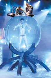 David Blaine sits a top a sphere where he set a new world